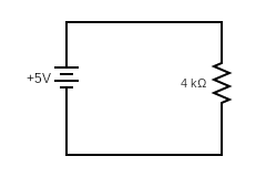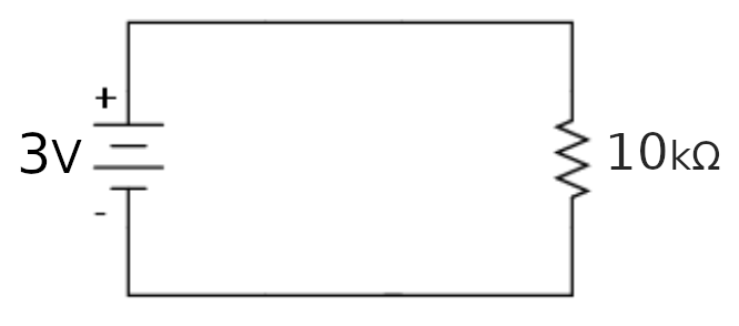 The circuit diagram below depicts a circuit with two components: a voltage source (battery) on the left, and a resistor on the right. They are connected by wire (lines).