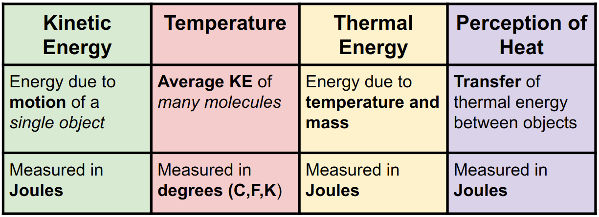- Specific Heat Capactiy: Property of matter that describes how much thermal energy is needed to change the temperature of something by 1 degree.